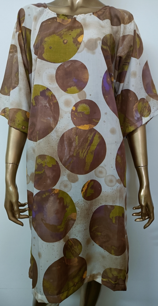 Green Brown Circles Ivory Short Sleeve Dress