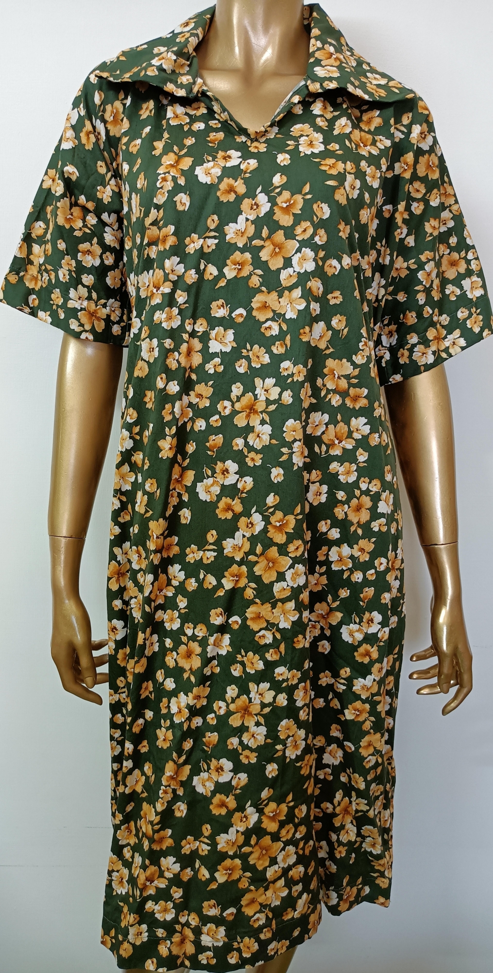 Gold Flowers Dark Green Dress